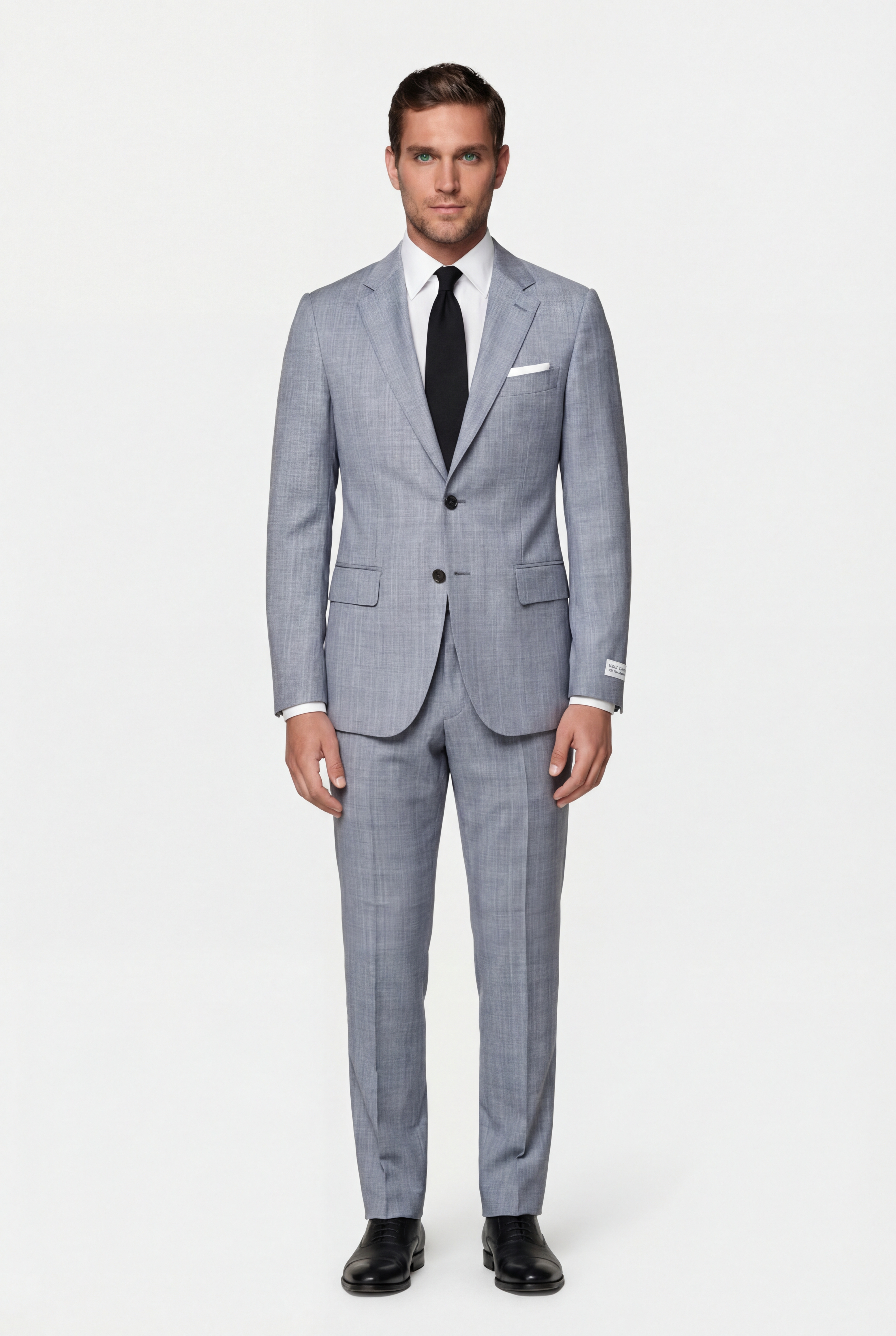 • Классический мужской костюм полуприлегающего силуэта из полушерстяной французской ткани с матовым эффектом. Пиджак однобортный, две шлицы. Застежка на две пуговицы. Воротник классический, отложной, на лацкане имеется фасонная петля. Край лацкана, воротник, клапаны карманов декорированы отделочной строчкой «вспушка» (имитация ручного стежка). Два боковых кармана с клапанами, нагрудный карман «листочка». Рукава со шлицами на 4 пуговицы пришитые внахлест. Четыре внутренних кармана, один застегивается на пуговицу. Брюки полуприлегающего силуэта с классической посадкой, два боковых кармана, два задних кармана с застежкой на пуговицу, на поясе предусмотрены шлевки для ремня. Подкладка: 100 % вискоза. Отличный вариант на каждый день.