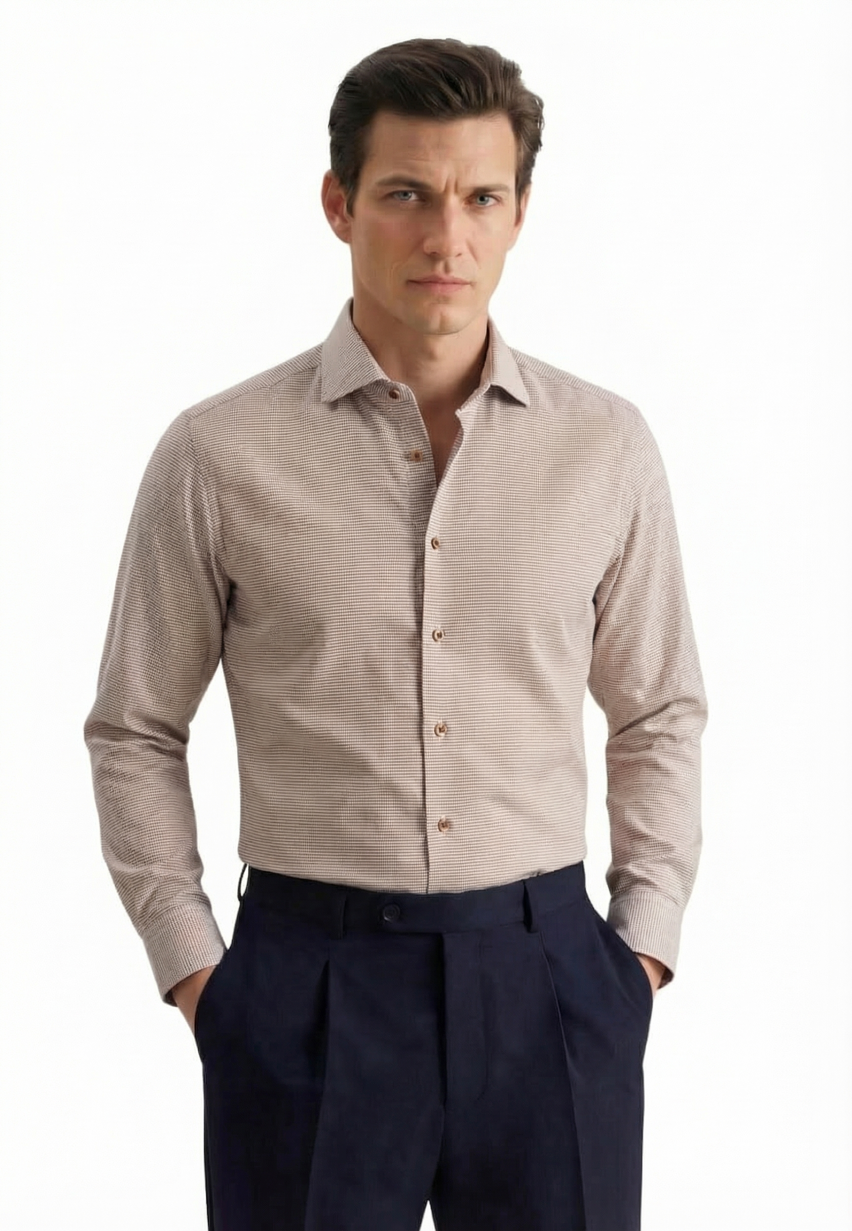 • Shaped Fit, Классический воротник, Коричневый