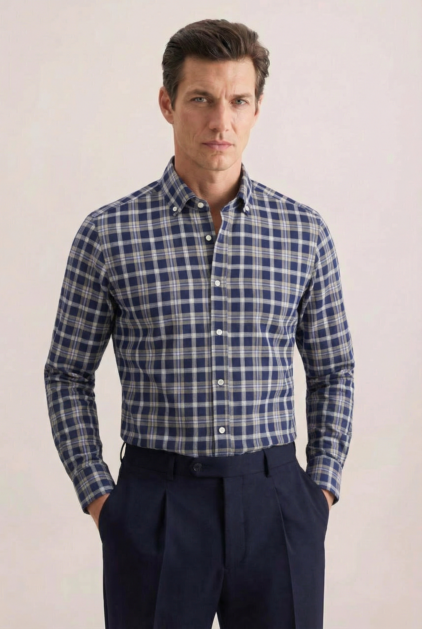 • Custom Fit, Button & dawn, Классический (на пуговице), Клетка, Синий