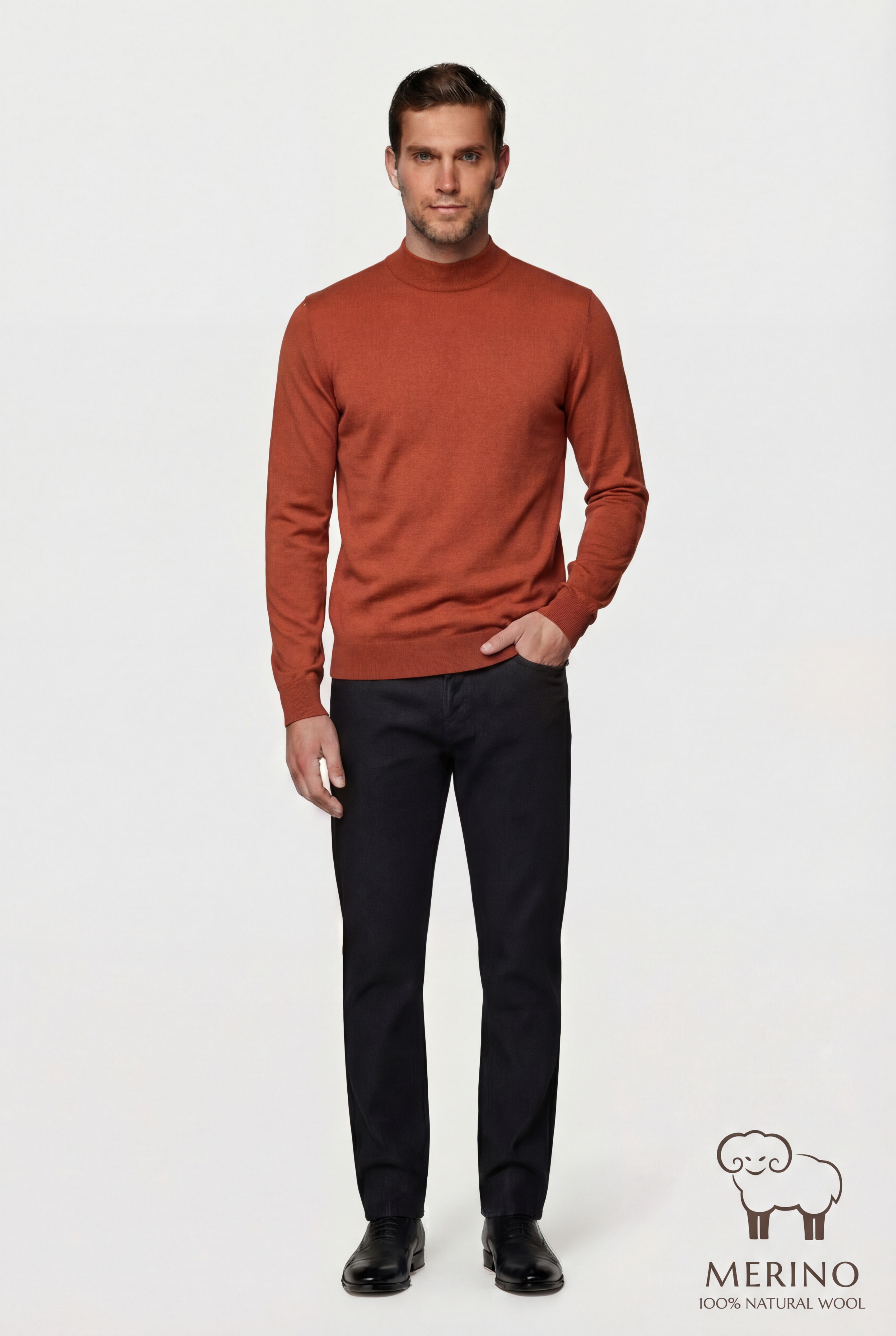 • Стильный мужской джемпер станет идеальным выбором для прохладных осенних дней. Изготовленный из высококачественных материалов, он обеспечивает комфорт и тепло в течение всего дня. Однотонный дизайн и высокий ворот придают джемперу элегантность и универсальность, позволяя легко сочетать его с разными элементами гардероба. Терракотовый цвет добавляет образу яркости и тепла, делая его подходящим для повседневных и деловых встреч.